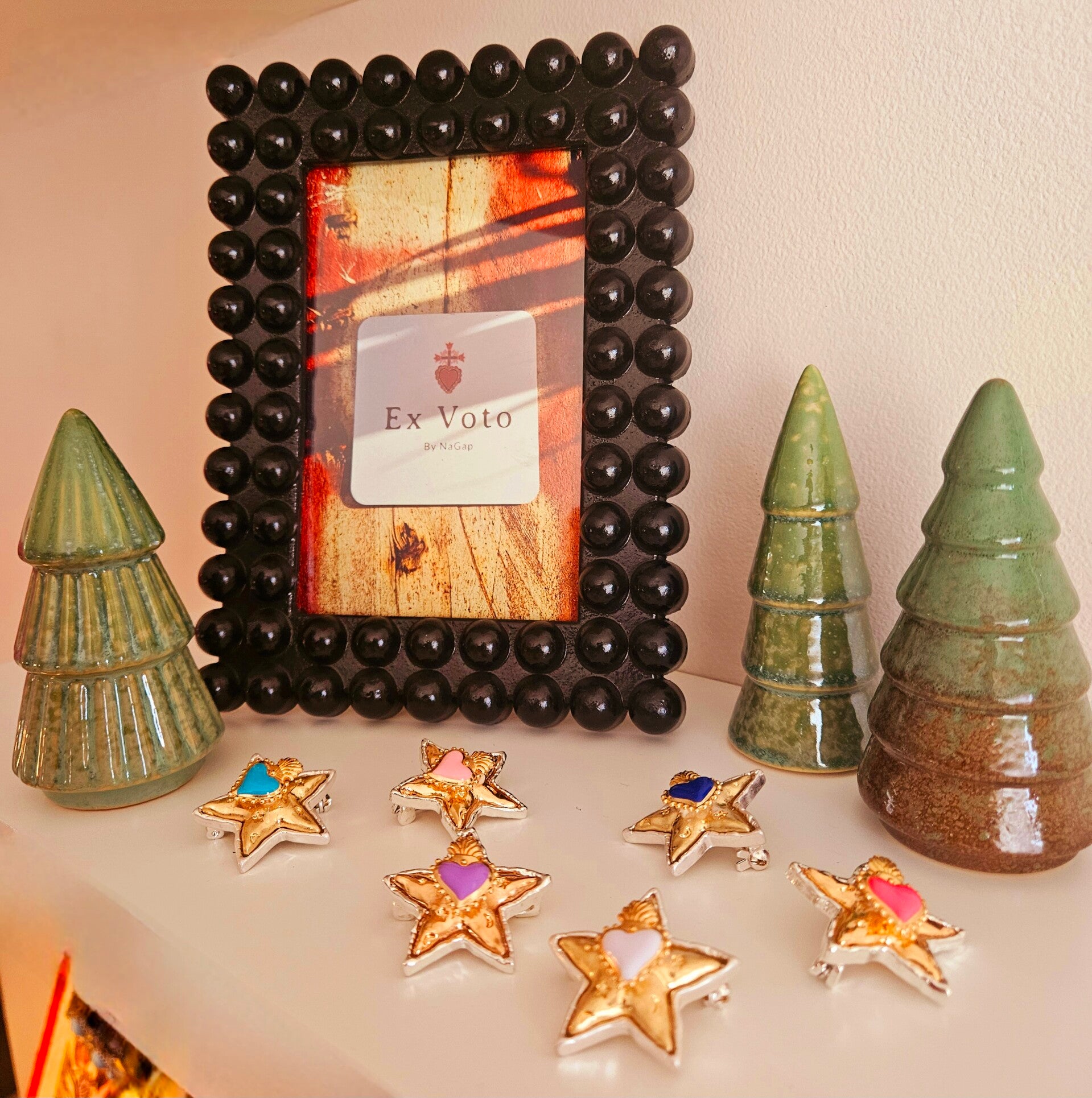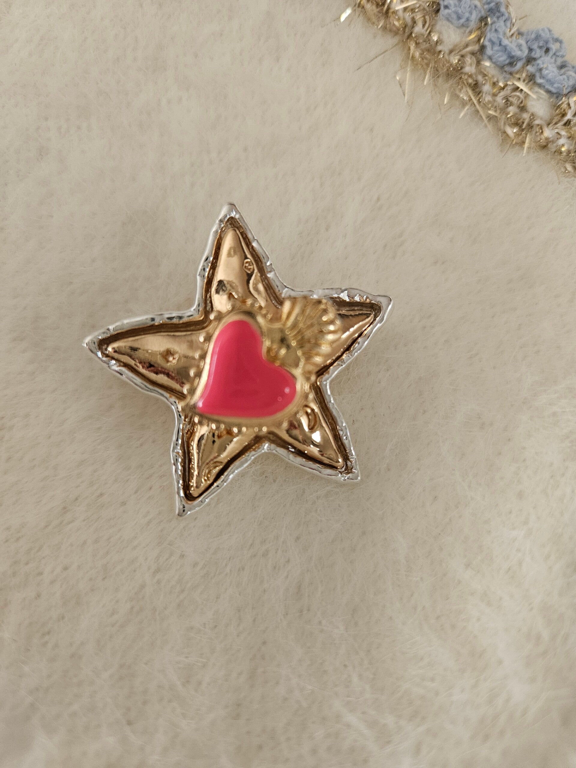Très belle petite broche etoile double teintes dorée bordé de blanc , Ex voto central différentes teintes .