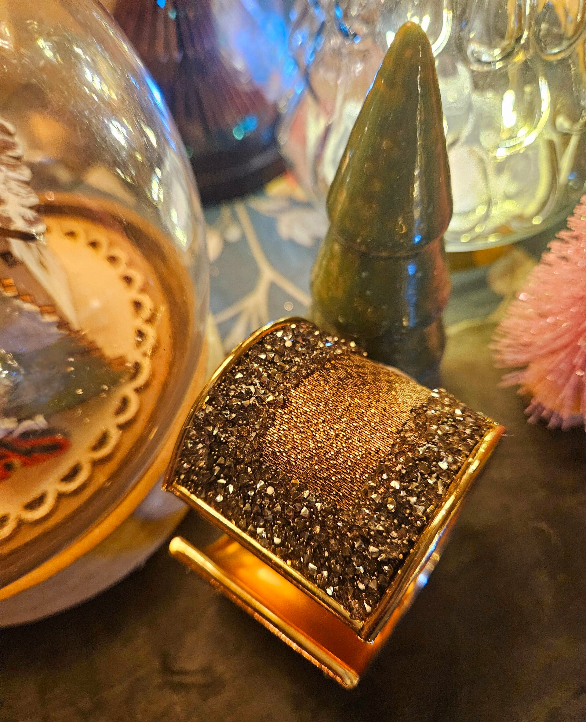 Manchette Prince ExVotoByNaGap, bracelet doré, satin noir avec organza bronze, strass champagne et noirs.