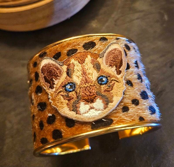 Manchette FIFI ExVotoByNaGap , bracelet doré, imprimé relief tout doux animal , adorable petit lionceau.