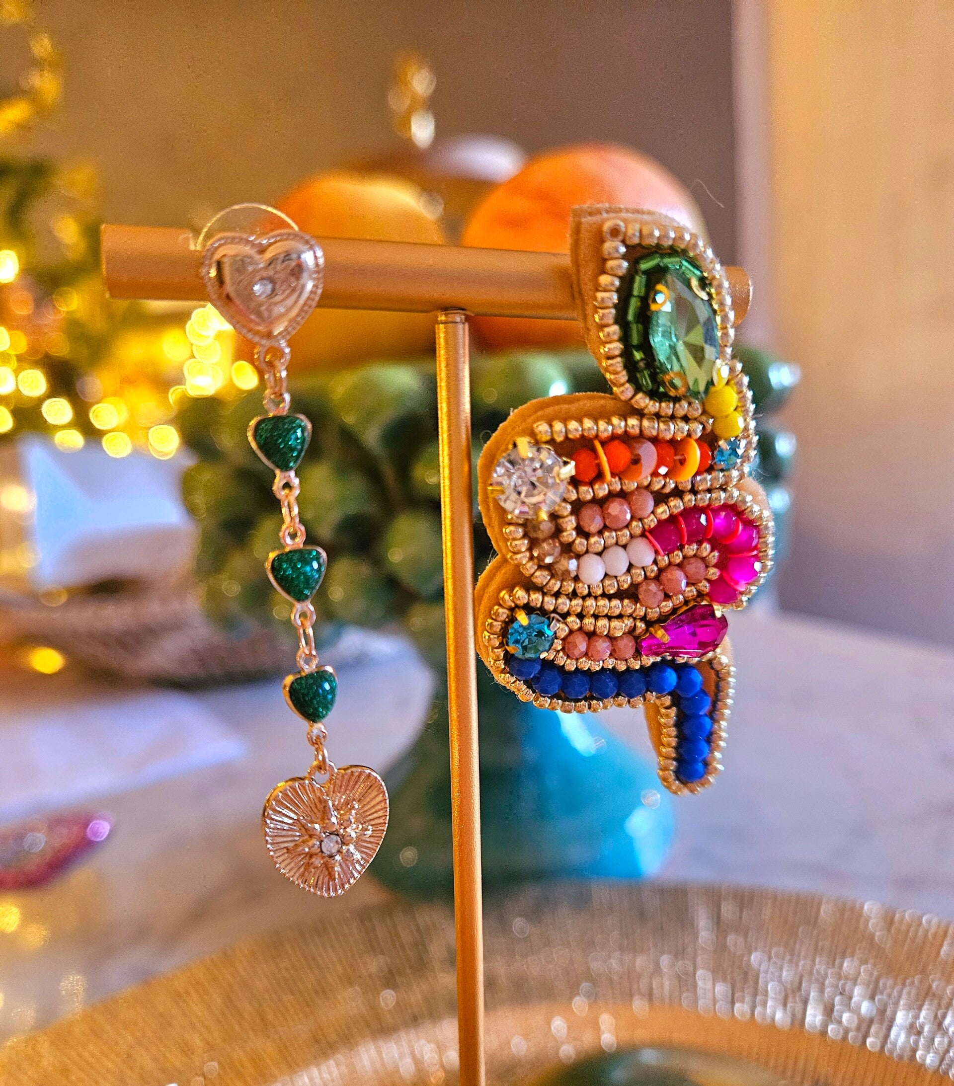 Boucles jardin d' Eden ExVotoByNaGap, asymétriques et différentes, cette très belle paire de boucles d' oreille aux couleurs vives rappellent inévitablement le fruit défendu et la tentation du jardin d' Eden ...la naissance de l' amour. Création originale ExVotoByNaGap, perles de rocailles , acier inoxydable, dim 6 cm , très légères à porter , livrées avec carte et sac cadeau .