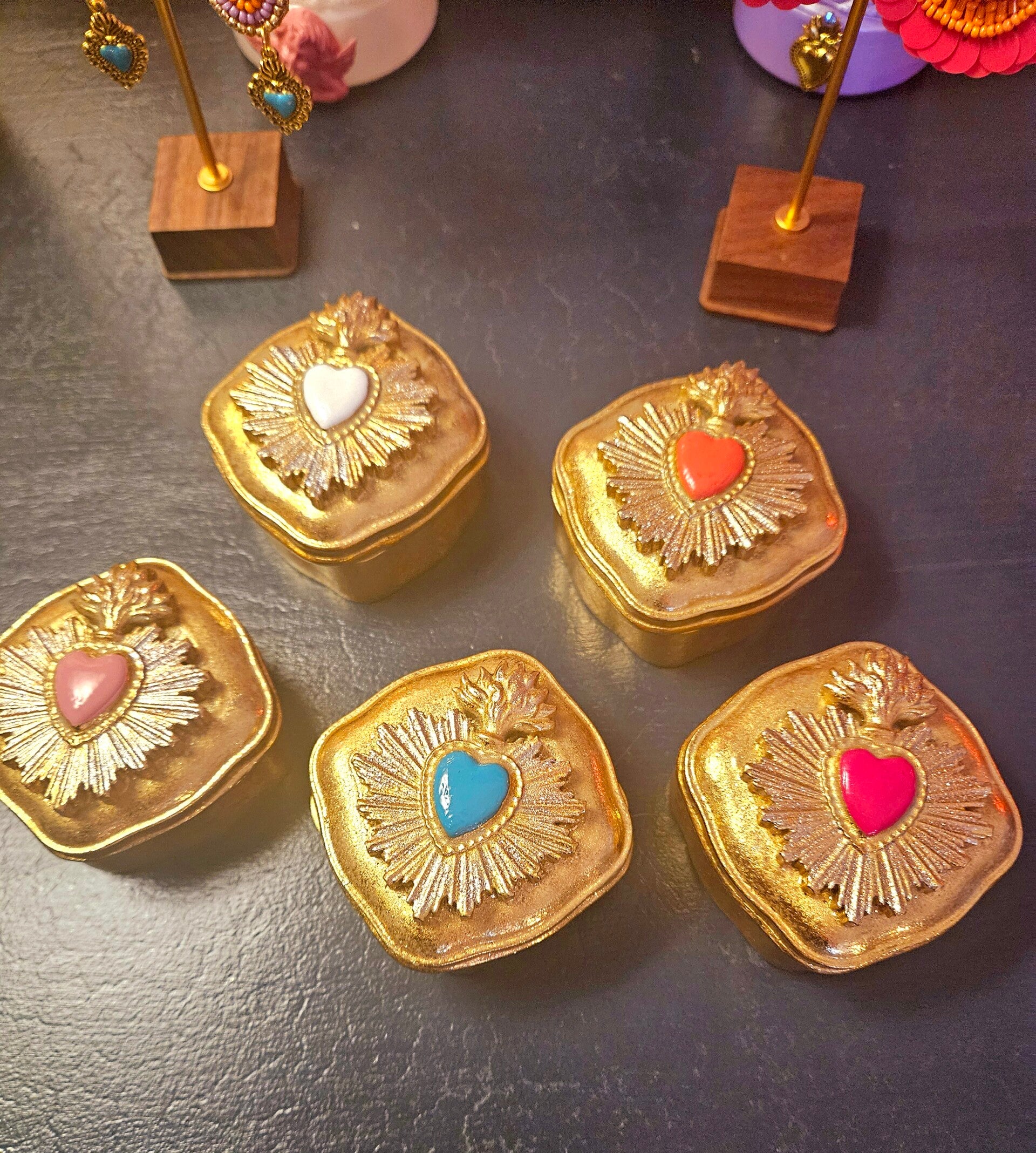 Boîtes ExVotoByNaGap, découvrez ces superbes Boîtes dorées et peintes à la main , elles mesurent environ 7×7 cm et pourront accueillir vos bijoux et autres trésors,