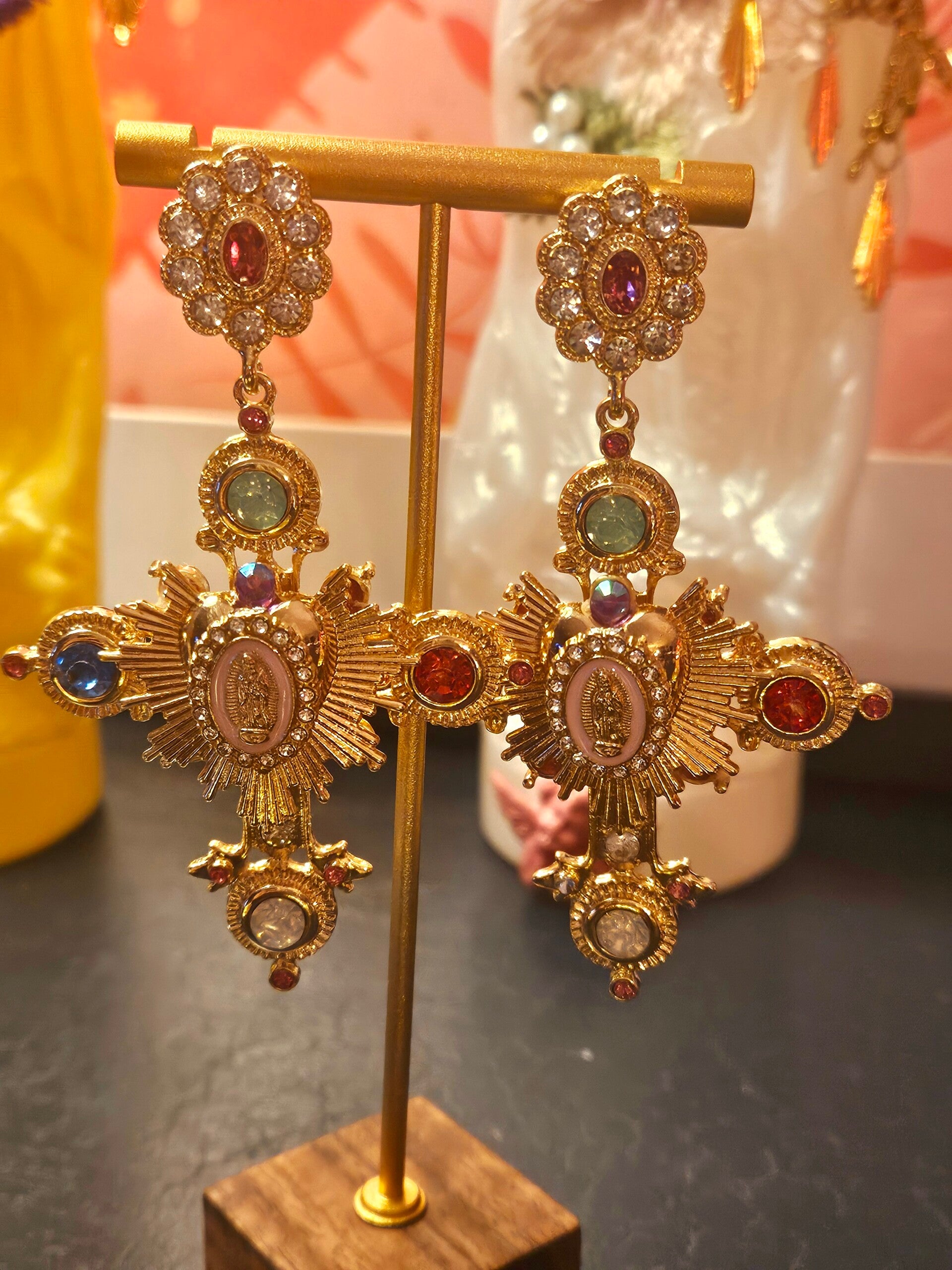 Boucles croix Estelle ExVotoByNaGap, retrouvez cette superbe paire de boucles d' oreille ExVotoByNaGap, très lumineuses et parfaites pour un effet waouh , cette paire est montée sur une croix en acier inoxydable strassée et ornée d' un superbe Ex voto , détail vierge strassée,