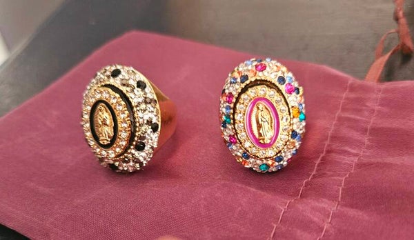 Bague Stella , magnifique bague cabochon strassée avec vierge , bague ajustable grâce à son attache élastique, s' adapte ainsi à tous les doigts !