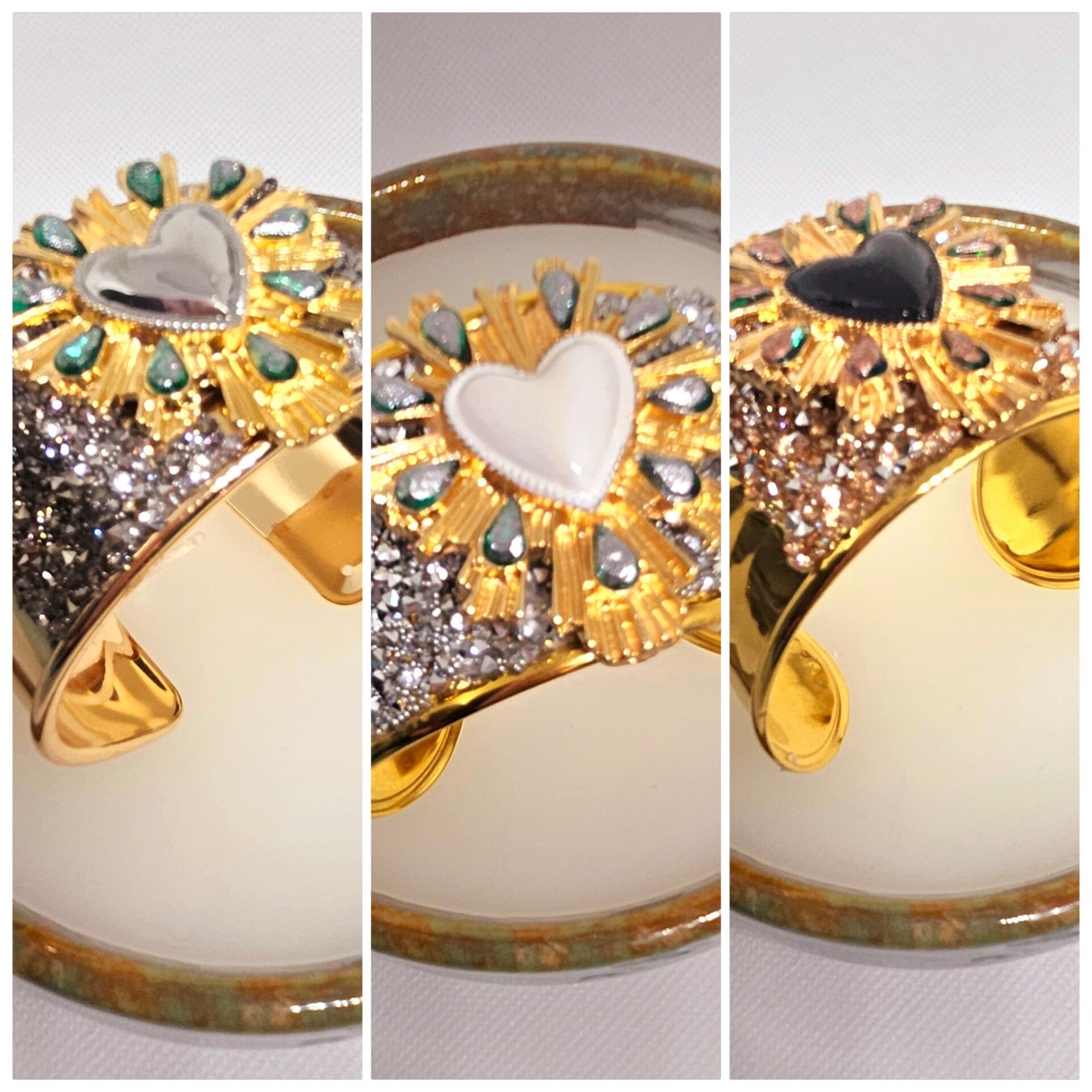 Manchette Miraje ExVotoByNaGap, sublime manchette en plaque or 18 c , l' Ex voto central travaillé à la main donne toute sa superbe à ce bracelet qui scintille de mille feux , je l' ai décliné en plusieurs coloris , possibilité de création sur mesure , me contacter via insta