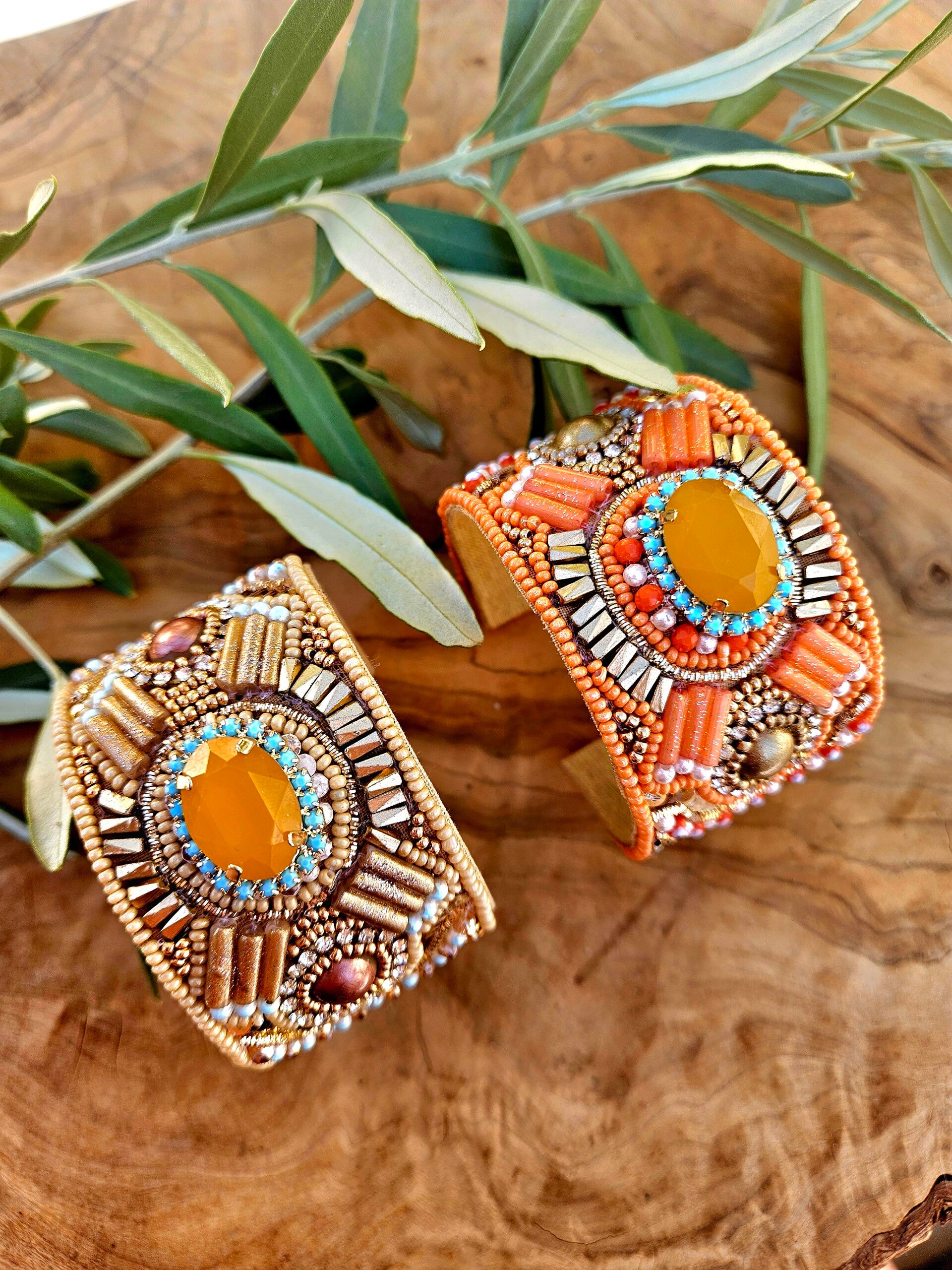 Manchette Kyo ExVotoByNaGap, découvrez ces très beaux bracelets hyper lumineux déclinés dans des teintes différentes aux couleurs de l' été, du raffinement, de l'originalité, des créations uniques et ajustables à tous les poignets.