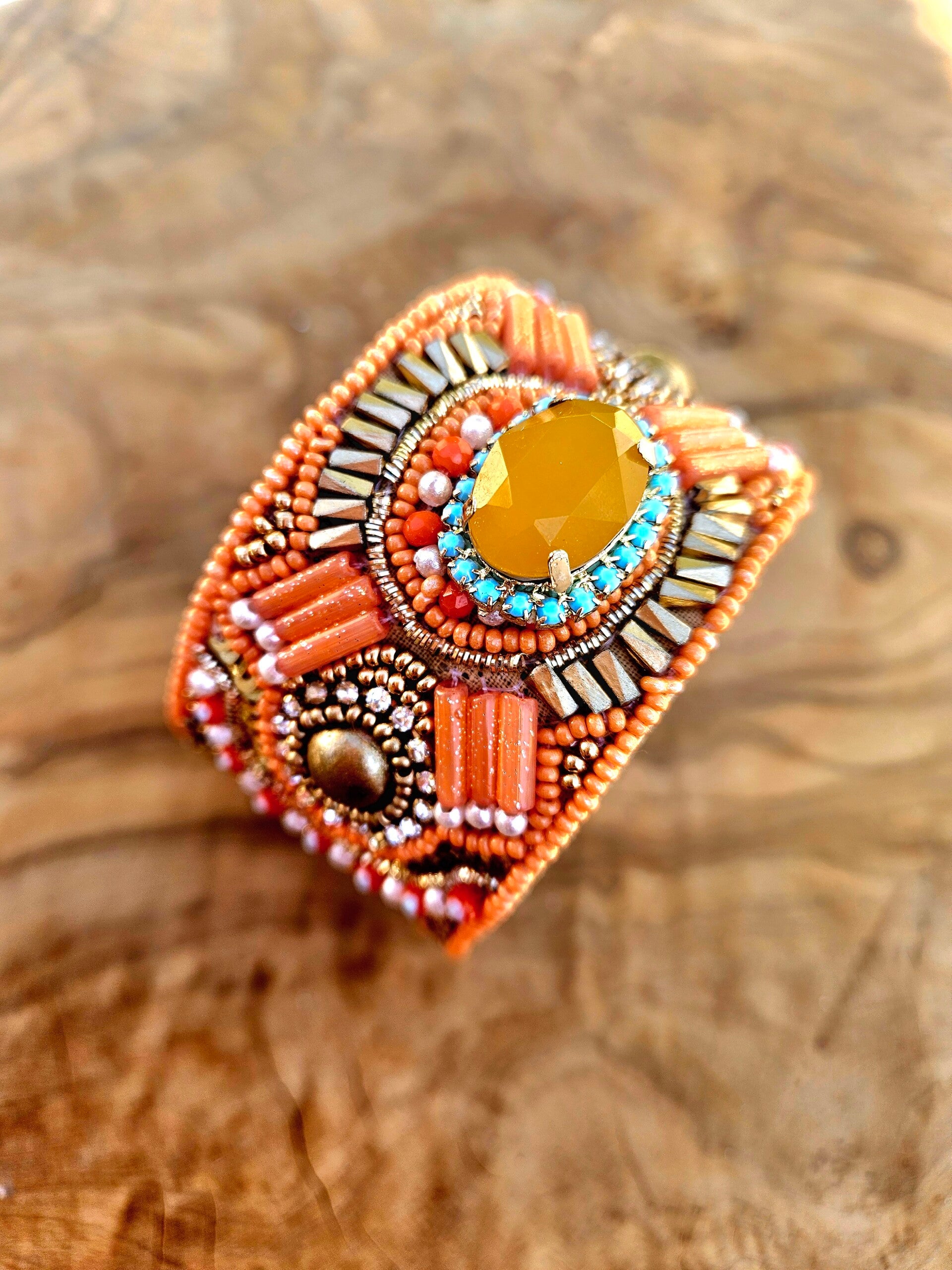 Plongez dans la chaleur estivale avec le bracelet "Éclat d'Été", une pièce unique qui illumine chaque tenue. Avec ses teintes vibrantes d'orange et ses éclats dorés, ce bracelet évoque les rayons du soleil caressant votre peau.