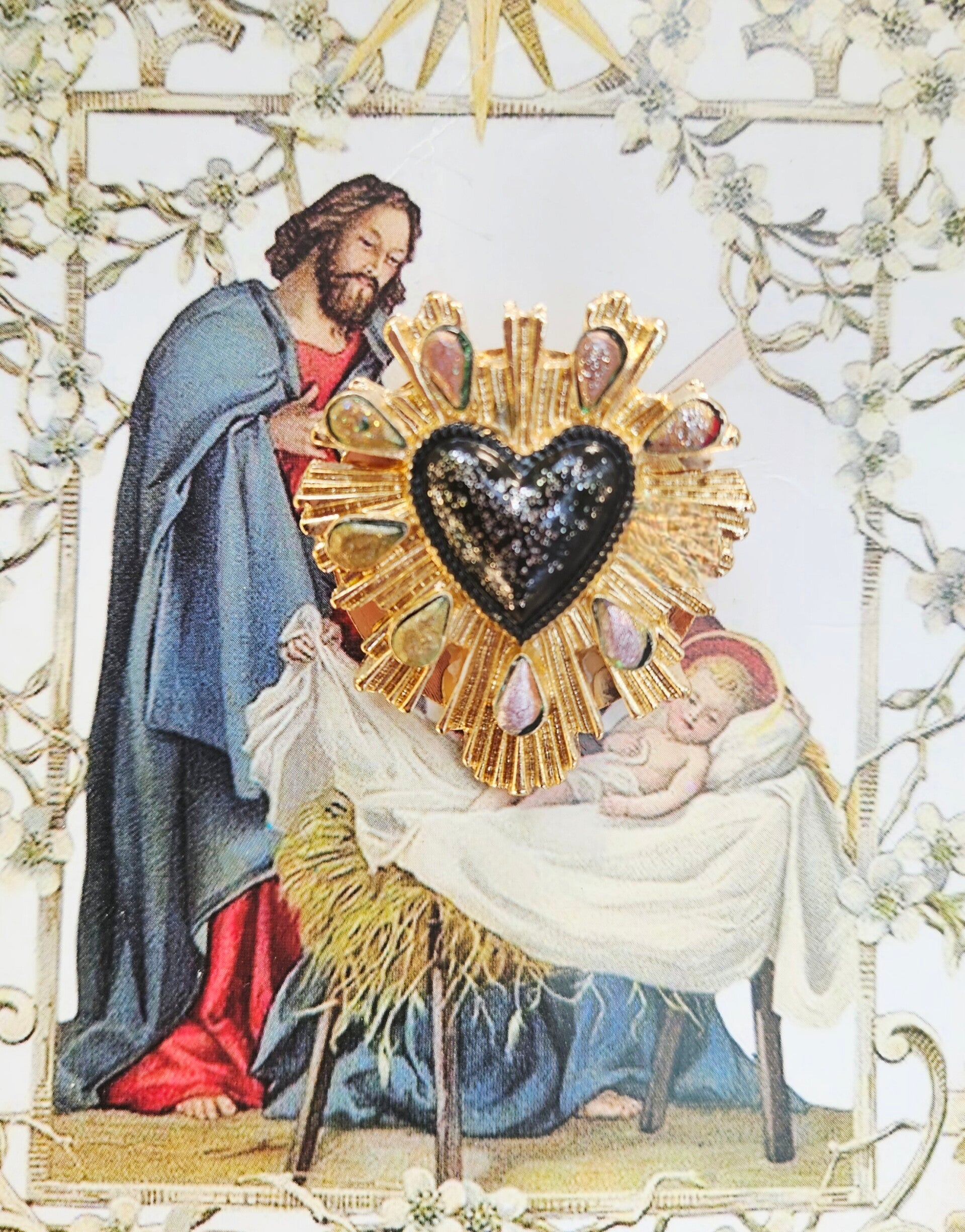 Découvrez nos broches uniques, montées sur une carte parfumée, livrée avec des pierres d'ambre. Chaque motif — étoile, Ex Voto, colombe, ange et croix — incarne l'essence même de notre marque ExVotoByNaGap.