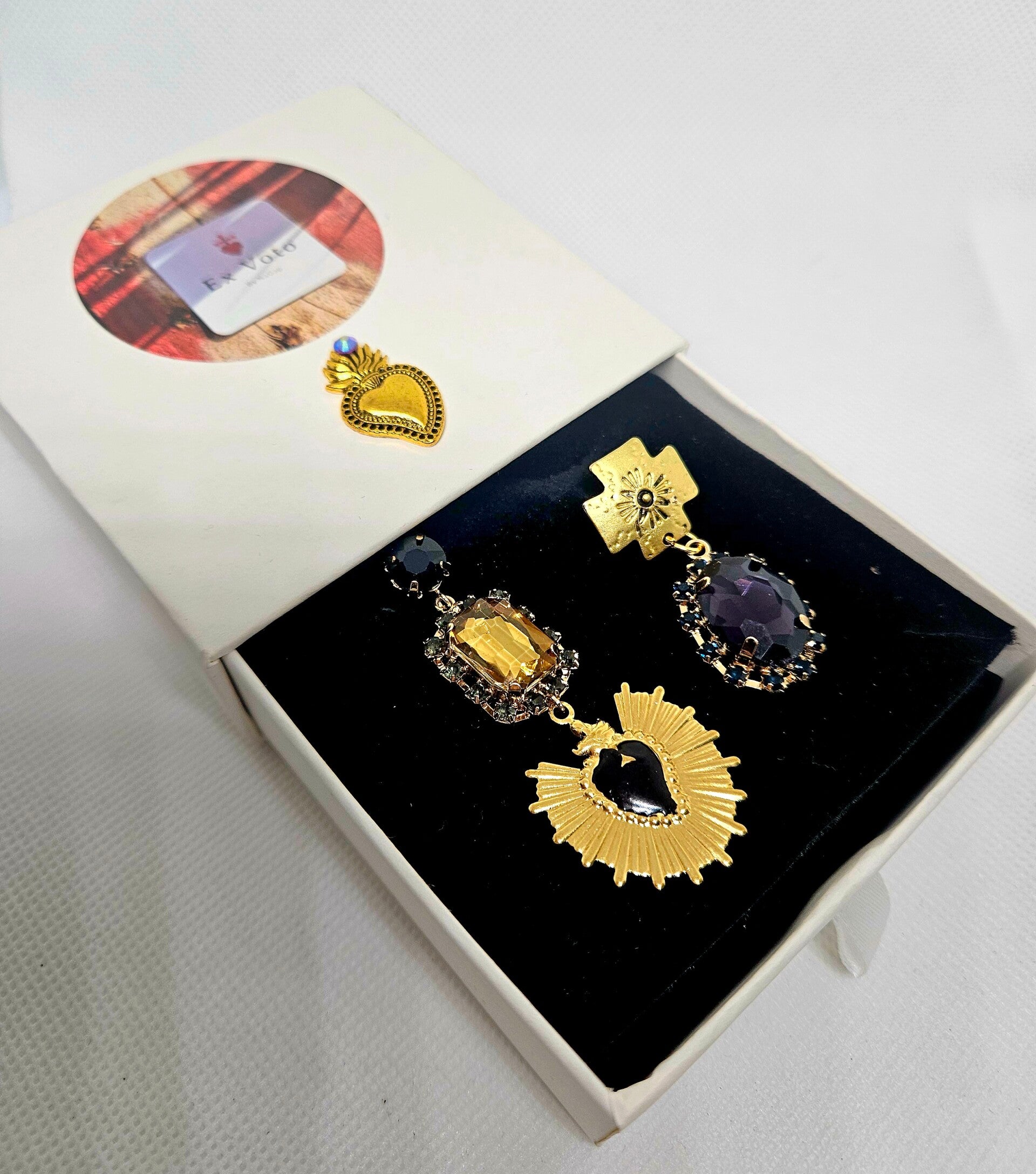 Plongez dans l’univers singulier d’ExVotoByNaGap avec Lumières Contraires, une paire de boucles d’oreilles qui célèbre la beauté de l’asymétrie et l’art du dépareillé.