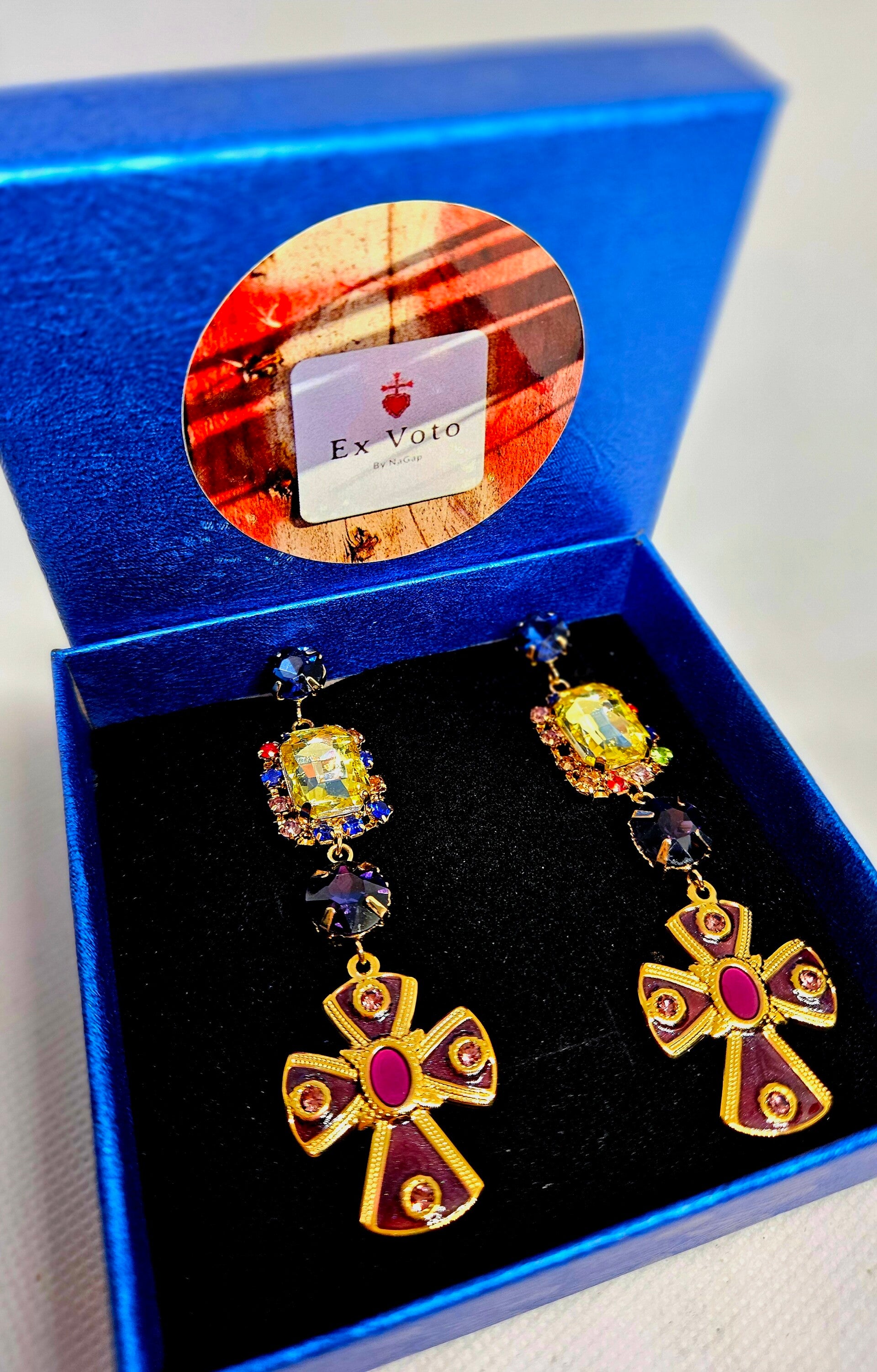 Plongez dans l’univers mystique et raffiné d’ExVotoByNaGap avec les boucles d’oreilles Croix d’Or et de Rubis.