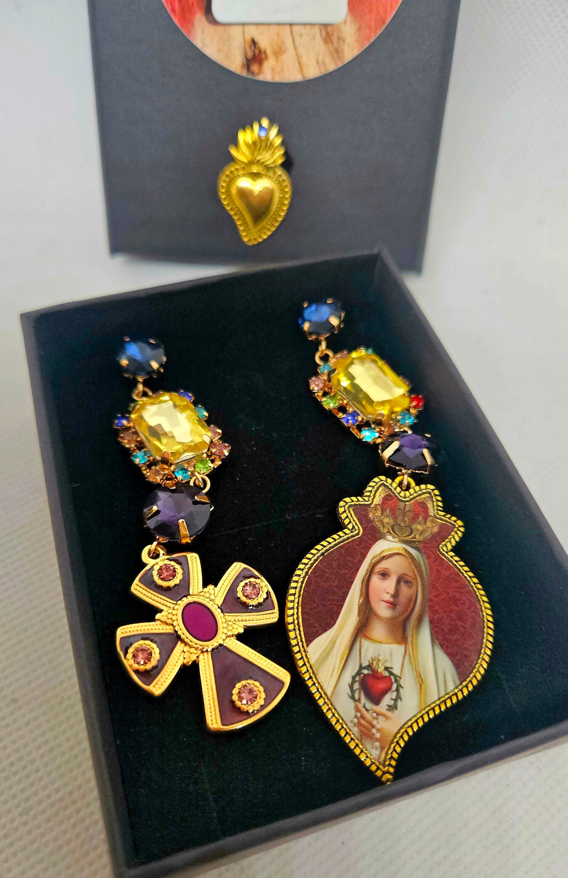 Long croix 8 cm longueur Madone 9 cm . Pour oreilles percées. Sans nickel hypoallergenique acier inoxydable. Livrées dans un coffret cadeau . Création originale ExVotoByNaGap.