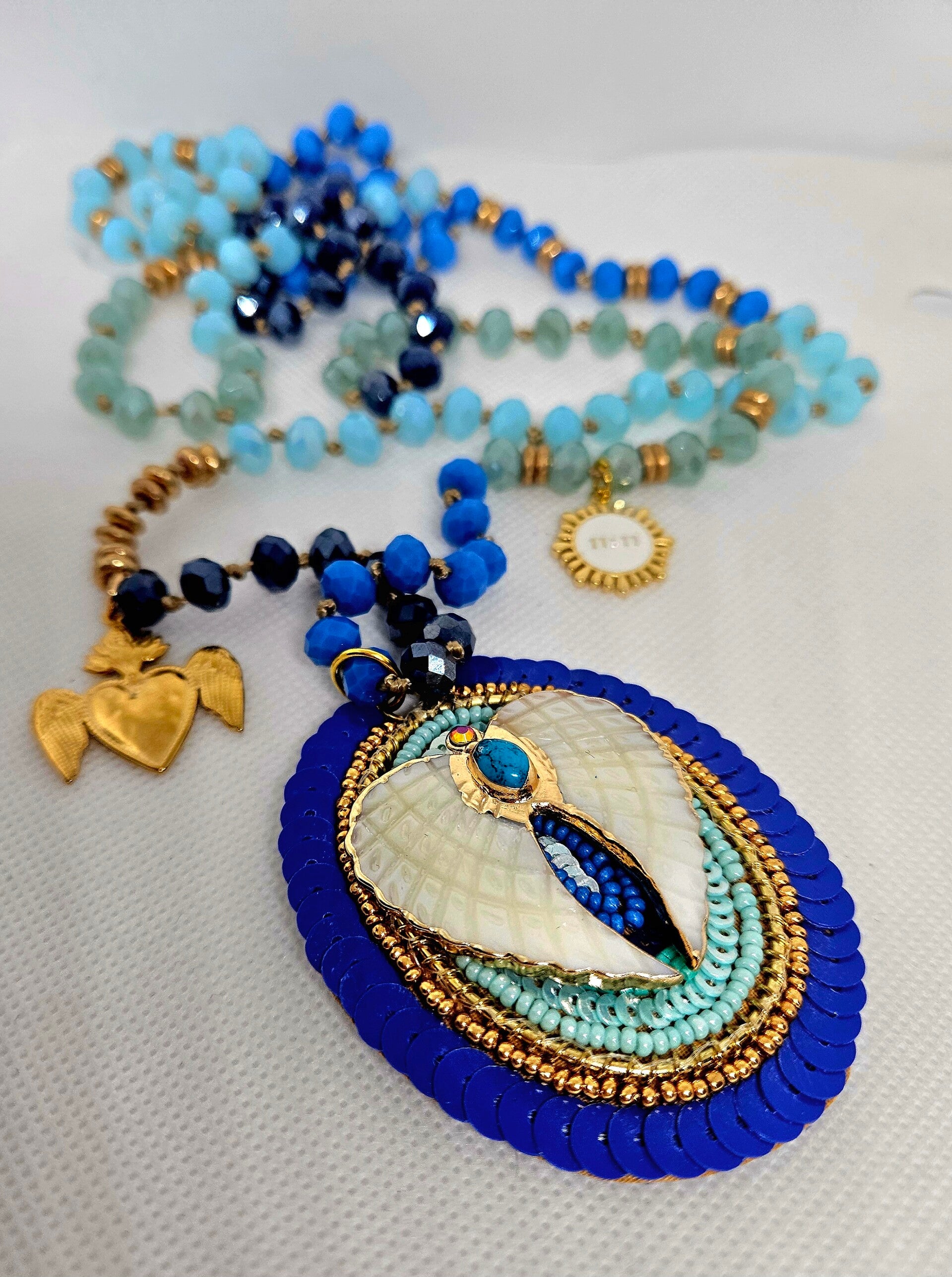 Chaque perle bleue évoque la sérénité du ciel, chaque éclat doré rappelle la présence bienveillante des anges.