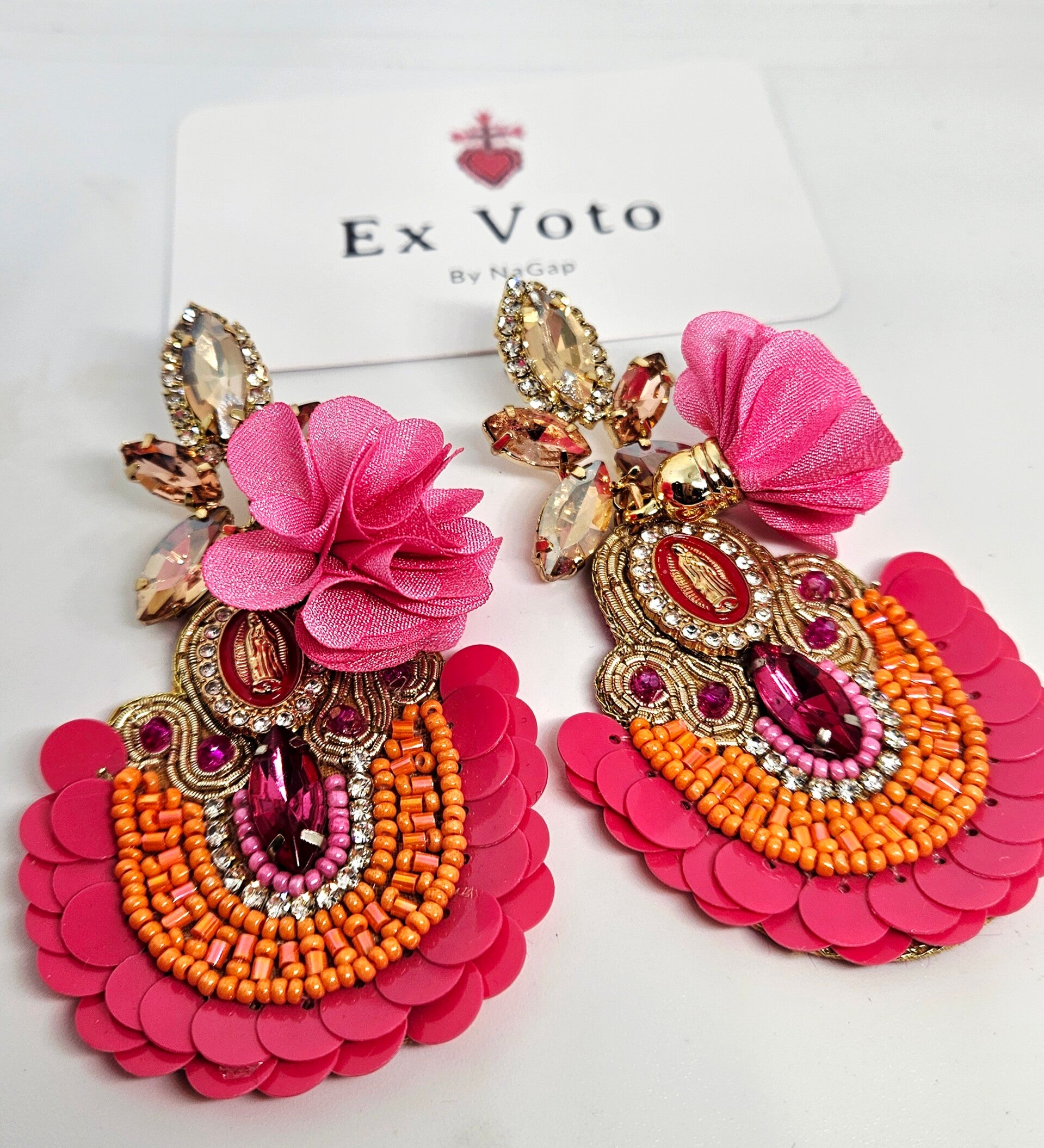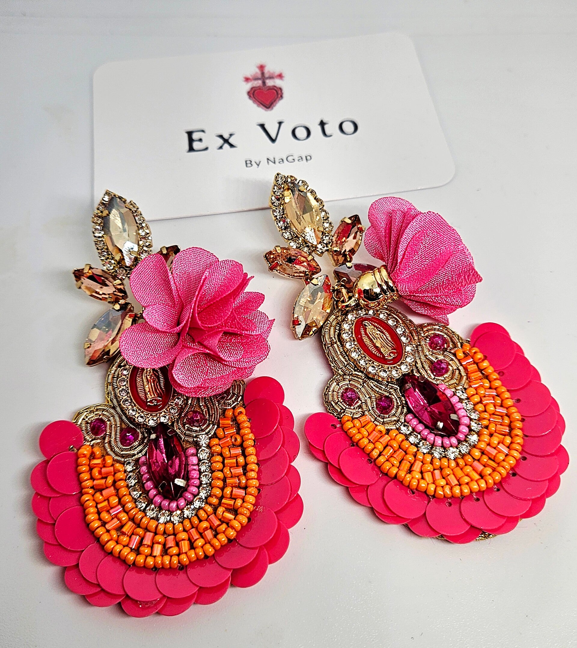 Éclat, audace et féminité flamboyante s’unissent dans les boucles d’oreilles Fuego Rosa signées ExVotoByNaGap.