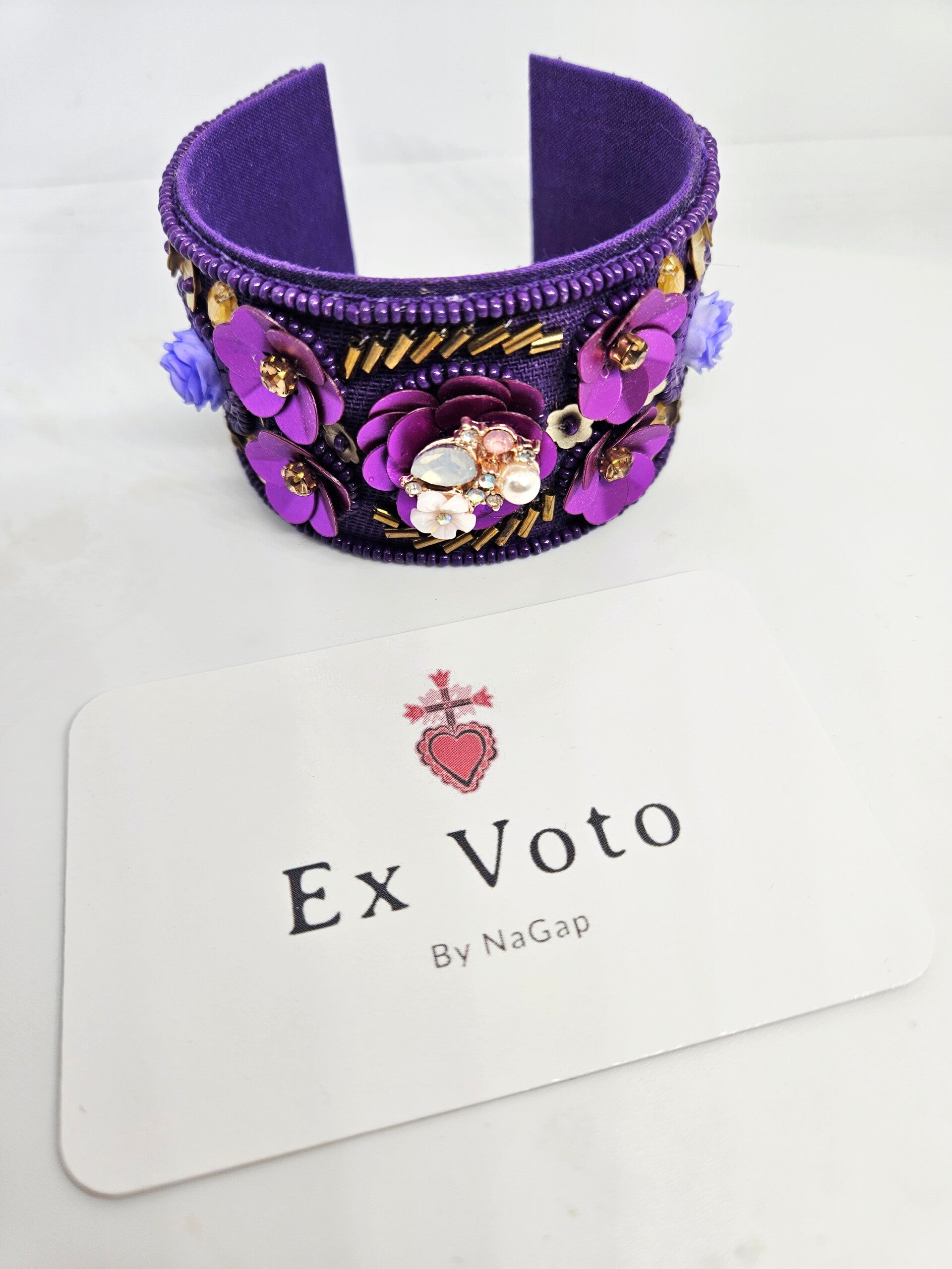 Plongez dans l’éclat envoûtant de Hypnotic Purple, la manchette qui célèbre la féminité audacieuse et la créativité artisanale.