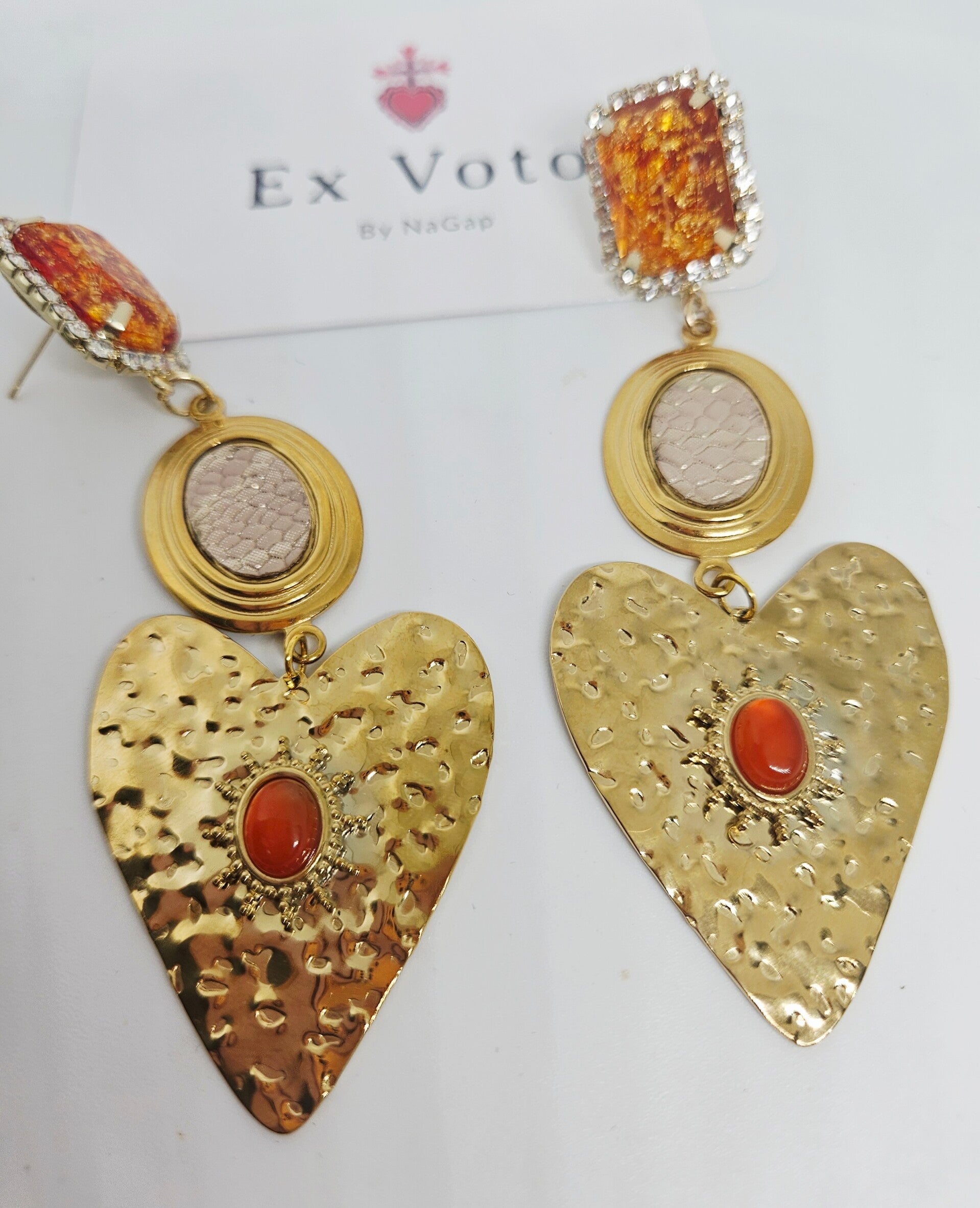 Création originale ExVotoByNaGap entièrement réalisée à la main sans nickel hypoallergenique acier inoxydable dim env 4×8 très légères à porter pour oreilles percées, livrées avec coffret cadeau